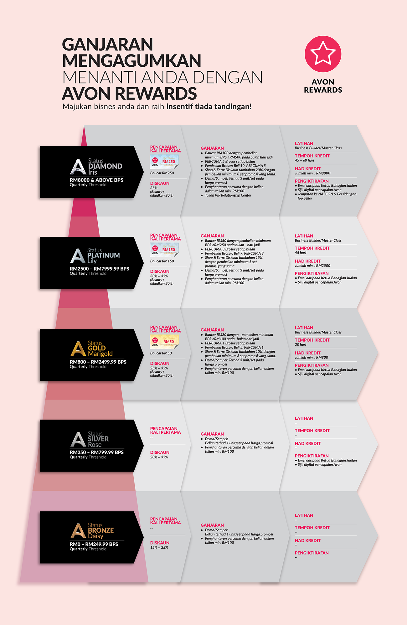 As an Avon Representative, you can receive discount for your purchases with us. Please refer the latest discount table below: